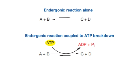 ATP用于使吸能反应更易进行。它由放能反应形成,然后用于驱动吸能反应。
